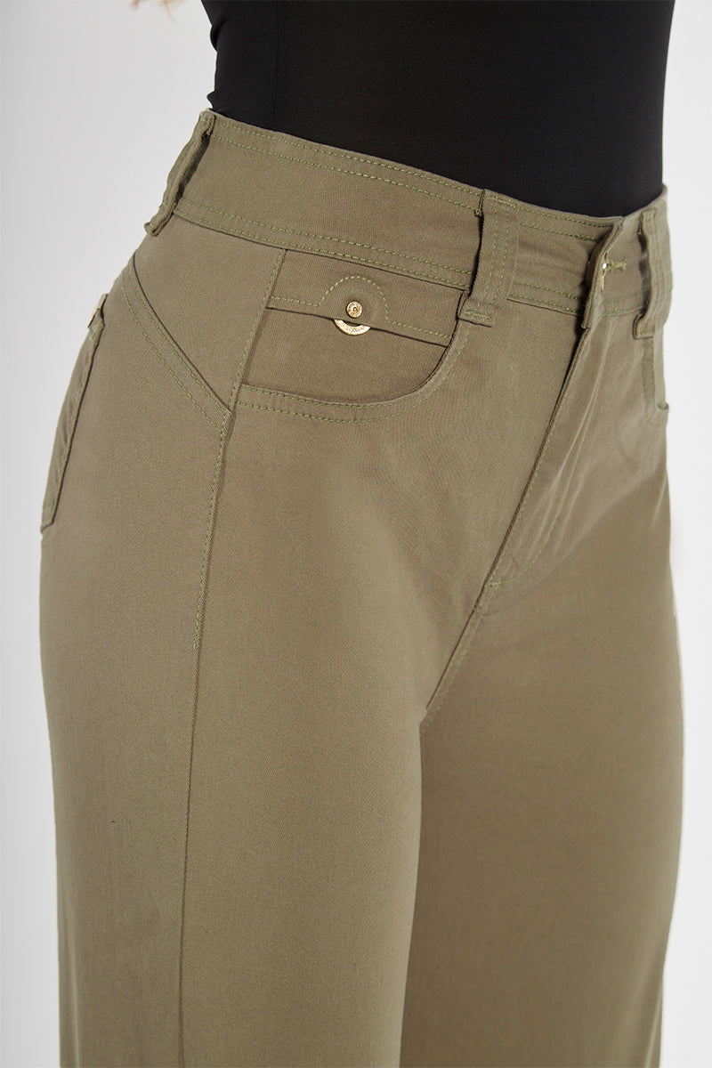 Jeans Seiko con push up, color Verde Kaki, largo crop/tobillero (68cm desde la entrepierna hasta la bota del jeans)