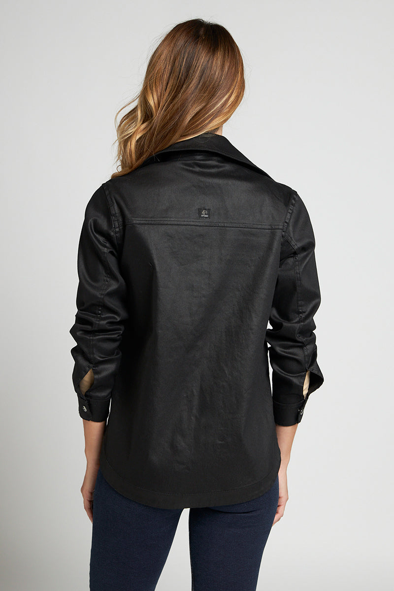 Sobre Camisa denim Utilitary con broches delanteros, color negro.