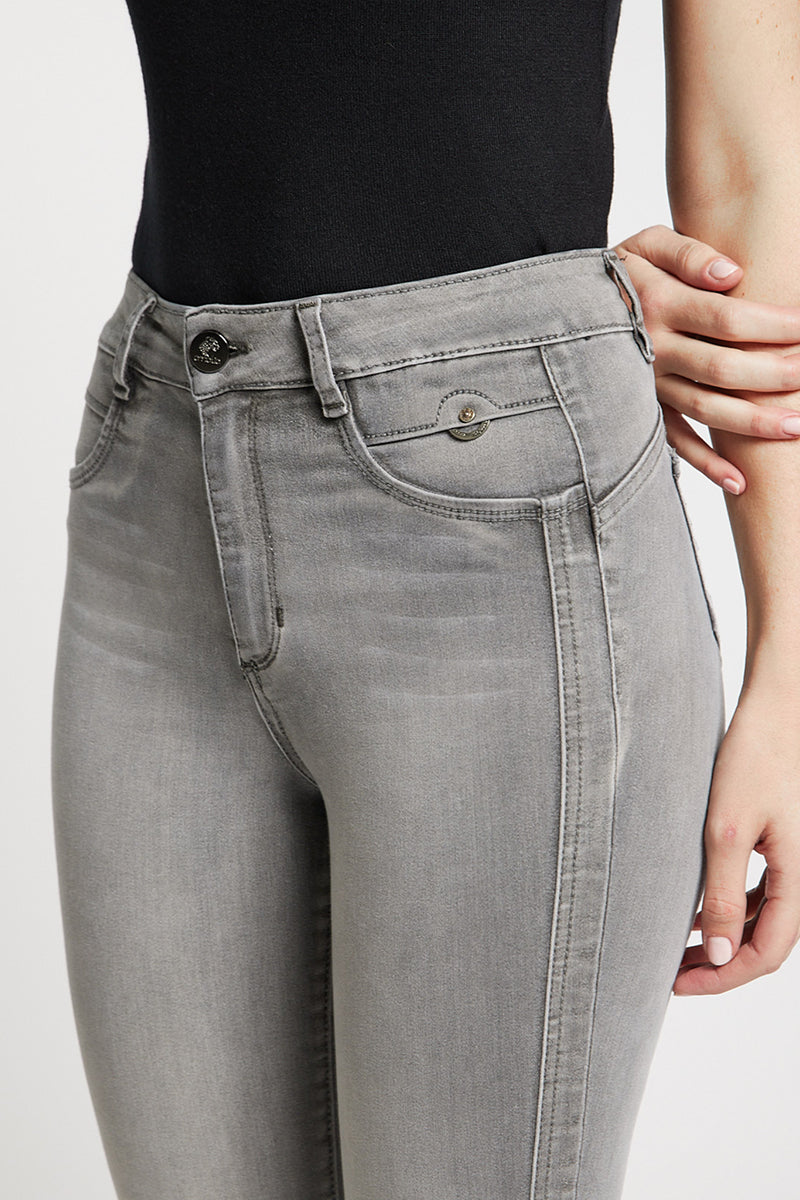 El Jeans Tiro Alto Pitillo ha sido diseñado para estilizar tu silueta con un moderno largo crop. Su tono gris versátil aporta un toque sofisticado y contemporáneo, ideal para renovar tus básicos esenciales.