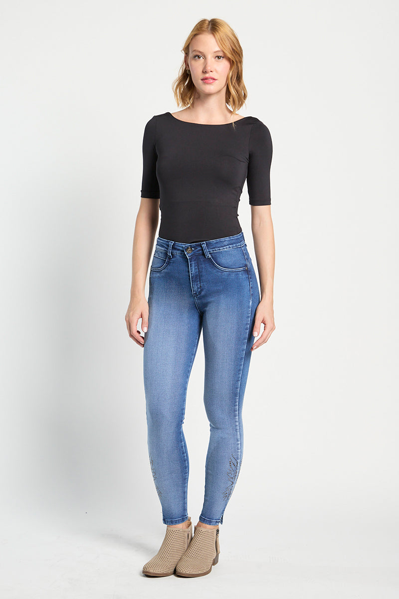 El Jeans Tiro Alto Pitillo en color azul ha sido diseñado para estilizar tu figura con un impecable corte de Tiro Alto y bota ajustada en largo Crop. Su tono azul clásico y terminación sobre el tobillo lo convierten en el básico esencial y moderno que aporta versatilidad y frescura a tu clóset.