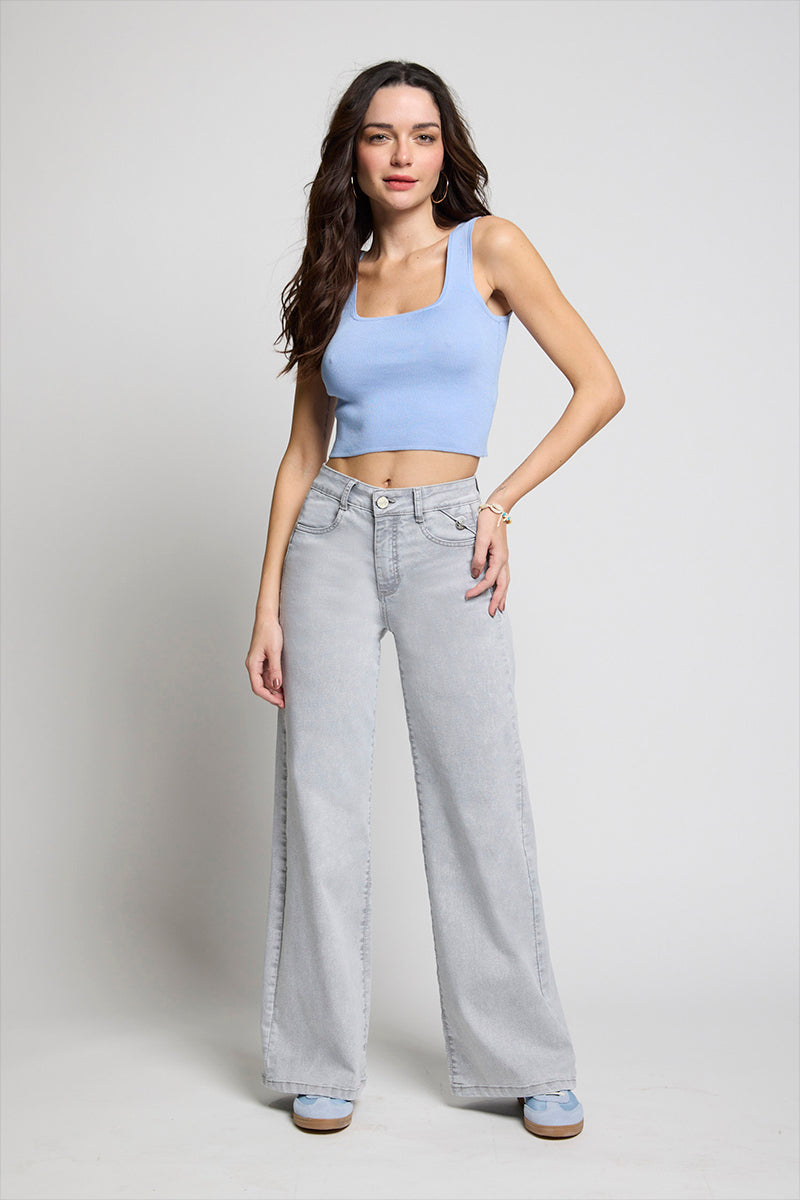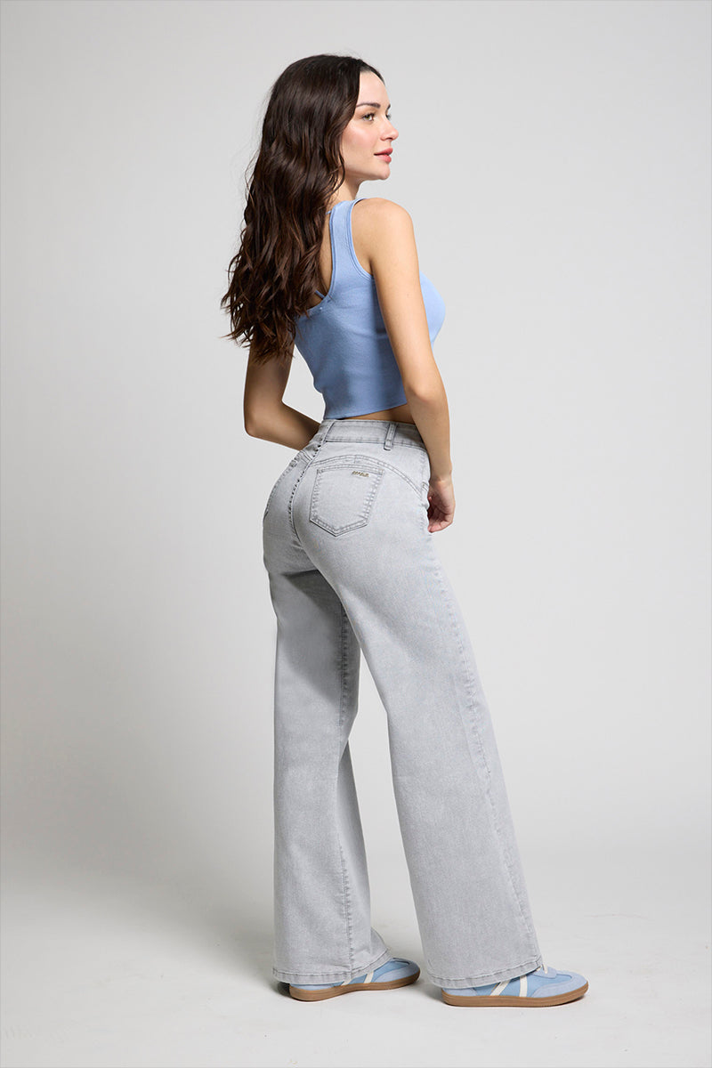 Wide Leg Jeans, color gris, largo normal. Tela Stretch Denim con elasticidad precisa para dar formar manteniendo la comodidad necesaria.